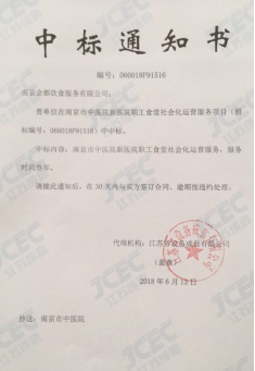On Friday 8 June 2018, Nanjing Grand Group (NGG) through its subsidiarβy Nanjing Yunjia Diet Culture Development Co. Ltd took part in the ten×der process of The Socialised Operation Service Bid for the Staff Canteen in the New Site of ÷the Nanjing Traditional Chinese Medicine Hospital. &n>bsp;