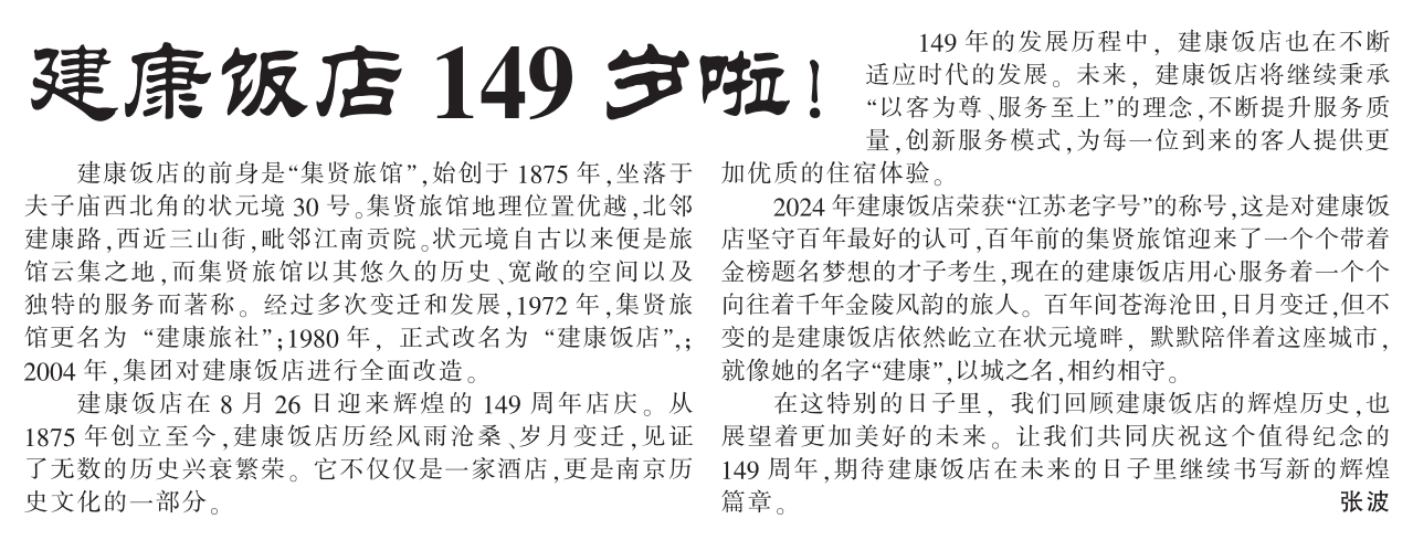 建康飯店(diàn)149歲啦!